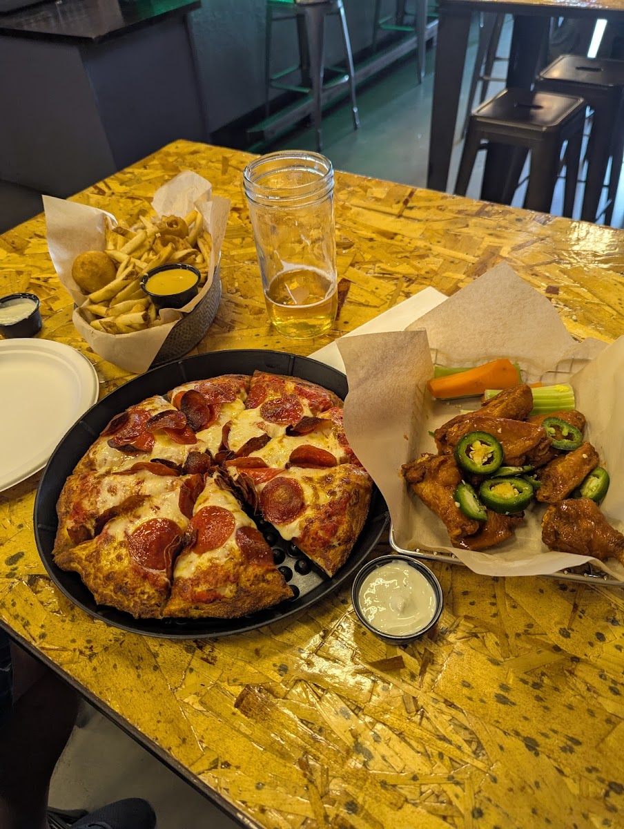 Food was really good. Bar food but leveled up. Clean and fun atmosphere. Service was great. Friendly, helpful. Pictures don't really do the food justice.
