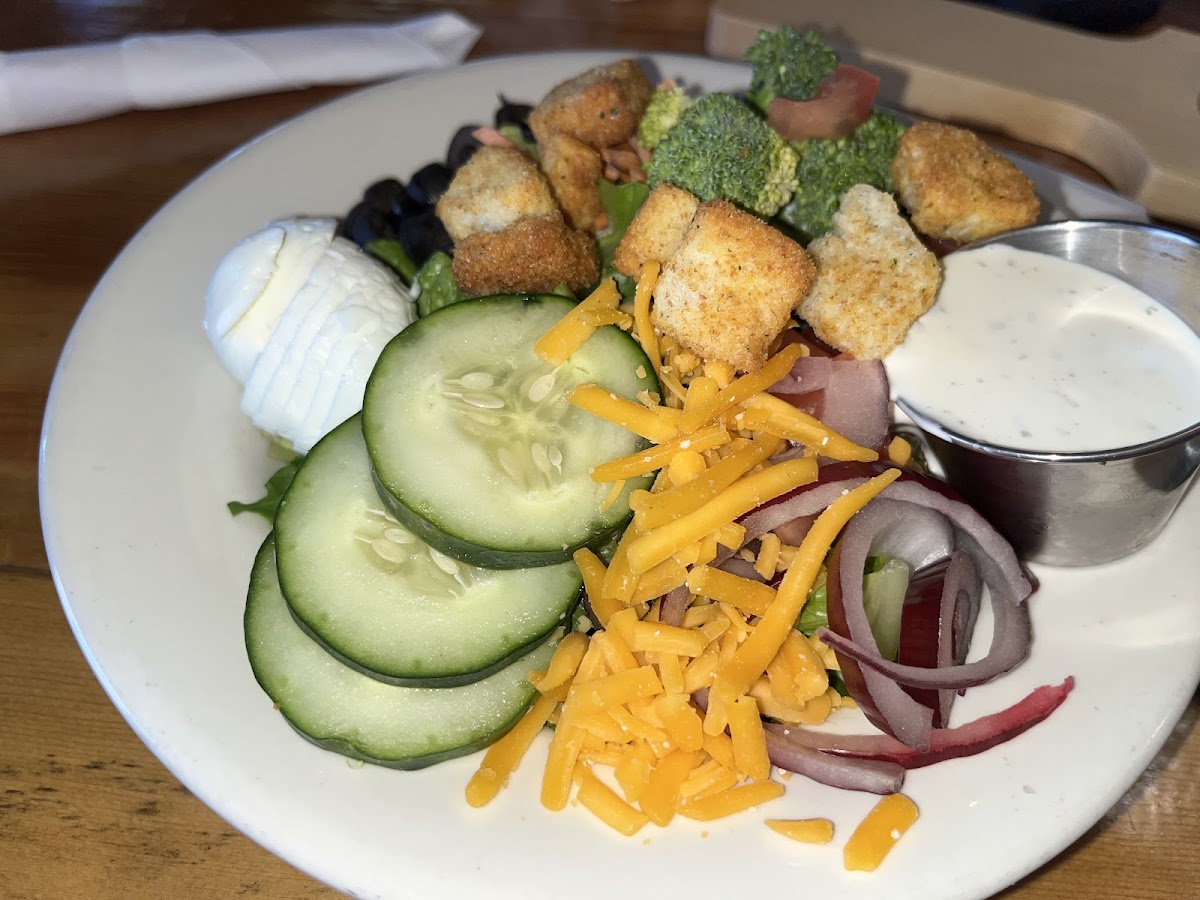 Such a good local find! Not only was the food great (I recommend the salad that comes with the coarser sandwich—apples and candied walnuts!), but the portions are huge. The service was extremely attentive and friendly. (I accidentally made eye contact and was immediately checked on.) Raspbery mojito was gloriously minty, so you can be assured that the cocktails menu is just as well thought out as the beer selection. Other important notes: plenty of parking, good air conditioning, and lots of space for families as well as for bar patrons. There were a few games on the tvs in the bar, and people were avidly watching, but the sound was off so that non-sports-fans could enjoy the atmosphere in peace. If you’re looking for a local place and think the menu looks good, give this one a try. (Note on photo: there’s a whole other room behind the wall, doubling the size.)